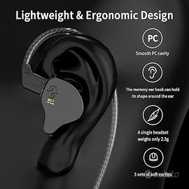 Caratteristica specialeDesign avvolgente dell'orecchio, Filo OFC 4N morbido e resistente, Gancio per orecchio memory, Cavità in policarbonato e auricolari dal design esclusivo, Comfort e leggerezza
