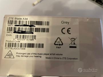 ZTE Blade A34 Grey - Smartphone 6.6" HD+, Fotocamera 8MP, Batteria 5000mAh, 4 GB RAM e 64GB ROM, Octa-Core, Android 13, Riconoscimento Facciale, Display Waterdrop, Memory Fusion NUOVO ANCORA SIGILLATO