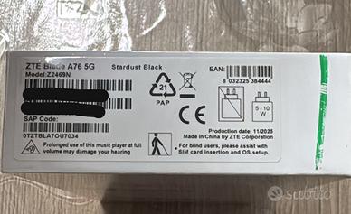 Vendo smartphone ZTE Blade A76 5G, colore Black, NUOVO DI FABBRICA. La scatola è ancora sigillata, mai aperta. Il telefono è un regalo non gradito, vendo per realizzo. Caratteristiche principali: Sistema Operativo: Android 15 (ultima versione) Display: 6.75 pollici HD+ IPS 120Hz Memoria: 128GB espandibile con MicroSD Fotocamera: 50MP principale per ottimi scatti Connettività: 5G, NFC per pagamenti contactless, Jack cuffie. Garanzia attiva, fornisco prova d'acquisto. Disponibile per qualsiasi verifica dei sigilli dal vivo. Prezzo: €129 Consegna: Consegna a mano o spedizione sicura con TuttoSubito.