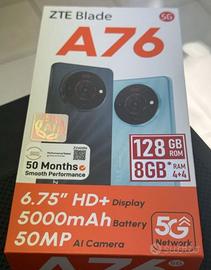 Vendo ZTE Blade A76 nuovo, mai usato, scatola originale sigillata. Telefono originale ZTE, pronto all’uso. Caratteristiche Display 6,6” HD+ 4 GB RAM – 128 GB memoria interna Fotocamera posteriore 50 MP Fotocamera frontale Batteria 5000 mAh Android Dual SIM Connettività: 4G, Wi-Fi, Bluetooth 📦 Nuovo e sigillato