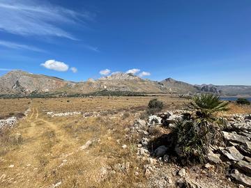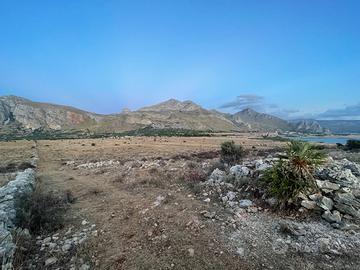 La destinazione d'uso del terreno attualmente è uso agricolo con dei limiti urbanistici e paesaggistici. Vista panoramica di Monte Cofano e Baia Santa Margherita Macari.