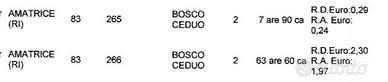 Vendo 70 are di bosco ceduo, zona Varoni di Scai (Amatrice - Rieti (RI)). La vegetazione esistente sul fondo si compone di faggi di 60/70 anni. Il bosco non viene tagliato, all'incirca, da allora.