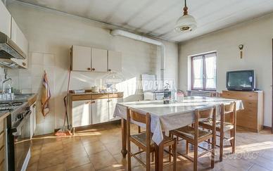 Al piano terra troviamo la zona giorno composta da cucina abitabile e soggiorno con camino a legna; tramite scala esterna ma interna alla struttura si accede al primo piano, dove un ballatoio conduce alla zona notte con ampio disimpegno, bagno con vasca, camera matrimoniale e cameretta, oltre a un'ulteriore camera matrimoniale separata, anch'essa accessibile dal ballatoio. Al secondo piano, nel sottotetto, sono presenti due stanze e un solaio, attualmente adibiti a magazzino. Completano il piano terra due cantine e un ulteriore bagno in corpo staccato.