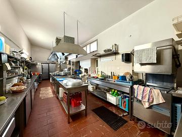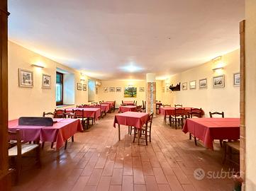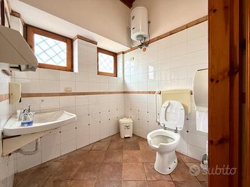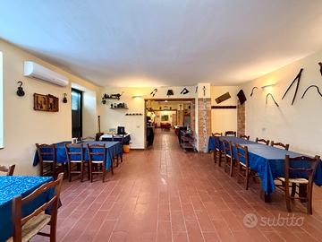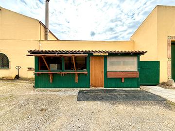 Zona ristoro che dispone di ampia sala con capienza di 110 posti a sedere, zona bar, forno a legna per pizzeria, bagni a servizio con w. c. h. , ampia cucina a norma con servizi per il personale, inoltre ampio gazebo esterno con capienza di 350 posti a sedere.