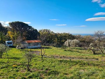 In posizione panoramica con ampia vista sulla campagna ed il mare, appezzamento di terreno agricolo della superficie di 2.000 mq. totalmente recintato con comodo accesso da strada bianca.