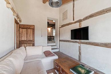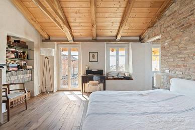 Rif:(128180556) - Nell'antico borgo medievale di Guarene, alle spalle del castello, si trova questa dimora di fine '800, completamente ristrutturata e con vista sulle Langhe Albesi. La proprietà è attorniata da un giardino che permette ai locali interni un costante affaccio sul verde; non isolata ma comunque riservata, permette di poter utilizzare gli spazi esterni in totale privacy. La casa è distribuita su due livelli, l'appartamento padronale si trova al piano superiore e si compone di un ampio soggiorno con cucina a vista e zona pranzo con affacci sia sul giardino principale che su un giardino interno riservato, due camere da letto di cui una matrimoniale e con bagno interno ed un ulteriore bagno. L'appartamento e anche il resto della casa sono caratterizzati da arredi in legno, rifiniture con materiali naturali e la pavimentazione è in cotto fiorentino; questo per consentire alla casa di mantenere l'autenticità rurale con i comfort moderni (pannelli solari, cappotto, riscaldamento a pavimento e caldaia a pellet centralizzata gestita con sistema domotico). Al piano terra, sono stati realizzati due appartamenti, con ingressi indipendenti entrambi composti da soggiorno con angolo cottura, camera da letto matrimoniale e servizio; le porte vetrate consentono ad entrambe le unità un accesso a un piccolo giardino riservato. Esiste un'ulteriore unità abitativa con accesso autonomo, al piano primo, composta da un salotto, una cucina con zona pranzo e giardinetto interno, soppalco per la zona notte oltre ad un ampio bagno. Al sottostante piano terra troviamo un vano cantina, un locale lavanderia/stireria e locale tecnico. Questa proprietà si presta sia come casa vacanza, come attività di B&B ed infine anche come abitazione principale essendo a pochi minuti da Alba e fruibile anche per più nuclei familiari. Lo spazio esterno consente anche di realizzare u - Classe: A4 - IPE: 175.00 kWh/mq anno