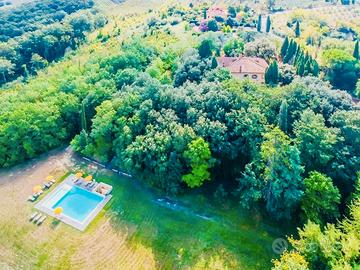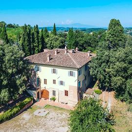 Bella proprietà nella campagna di San Miniato Pisa, Villa storica posta su di un colle con vista panoramica con parco e terreno, la villa 800 mq, tre piani da 260 mq cadauno oltre a mansarda, è formata da 4 appartamenti, ampi saloni per eventi e cerimonie, parco con piscina e terreno agricolo per 33 ettari, nel terreno insiste un fabbricato da ristrutturare di circa 400 mq,