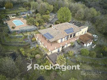 Rif:184480 - 20/04/2026 (128436596) - A Piedimonte Etneo, nella frazione di Presa, si erge maestosa "Casa Gallida", un casale siciliano d'epoca, risalente al 1840, sapientemente ristrutturato con eleganza, gusto e raffinatezza. Ubicato alle pendici della imperante Etna, Casa Gallida offre assoluta privacy ed un ineguagliabile panorama mozzafiato della costa nord-est sul mar Ionio. Taormina, Castelmola e la Calabria oltre lo Stretto si stagliano all'orizzonte come una cartolina sospesa tra cielo e mare. Il casale, immerso in un parco di quasi 2 ettari, ha una superficie di 500 mq ca., la maggior parte su unico livello, oltre a 800 mq ca. di terrazze e portici, una piscina di acqua salata con scala romana, solarium, spogliatoi, e docce esterne. Insiste nel parco anche un fabbricato rurale di 160mq da riattare, posto nella zona nord del parco. Si arriva al casale da una strada poderale, bretella della strada provinciale 68. L'antico cancello in ferro è automatizzato per accedere al comodo parcheggio. Ogni area del compendio immobiliare ha una sua precisa identità e destinazione: relax, lettura, passeggiate nei sentieri del parco, intrattenimento a bordo piscina, area barbecue, casetta nel bosco per lo svago dei più piccoli. I diversi livelli interni e la struttura originale dell'antico palmento sono stati abilmente riorganizzati con scrupolo e criterio, ottenendo armonia e funzionalità di tutti gli ambienti. La parte centrale del casale è composta da un grande salone dall'atmosfera calda e accogliente, la cucina spaziosa e funzionale, un soggiorno estivo in veranda, un'area office, la biblioteca, la camera padronale con bagno en suite, una seconda camera, il bagno ospiti, ed una piccola cantina segreta antichissima. Una SALA d'intrattenimento con spazio Cinema e carambola. Arricchiscono questa proprietà tre dépendances con terrazze e patio panoramicissimi, ingresso autono - Classe: B - IPE: 3.51 kWh/mq anno