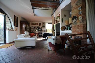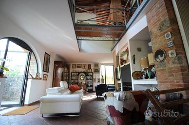 Rif:Pian del lago (121866242) - Siena - Comune di Monteriggioni. zona Pian del Lago, con circa 900 metri di strada bianca, immobile terratetto libero su 4 lati, completamente indipendente e con giardino e aia privata. L'immobile, derivante da costruzione/ristrutturazione degli anni novanta da antico fienile, sapientemente ristrutturato con gusto e con architettura ancora moderna. Al piano terreno è presente la zona giorno, con soggiorno, cucinotto, bagno e locale lavanderia. Al piano superiore sono presenti le tre camere, ampio bagno(sia con doccia che con vasca) e disimpegno " aperto" e "a vista". Nella ristrutturazione sono stati usati materiali di pregio. Il tetto è a travi e travicelli.