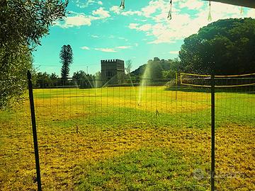 Area verde attrezzata per feste, compleanni ed eventi, dotata di barbecue al coperto, bagno, illuminazione, piano cucina con lavandino, gazebo con sedute, mini frigo, tavoli, sedie, campo di beach volley, campo di calcetto, tavolo da ping pong, parcheggio privato.