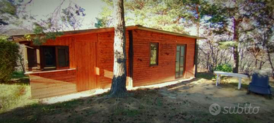 Una dependance con struttura prefabbricata coibentata rivestita in legno ottima per gli ospiti, posta in piccola pineta, con saletta, cucina, camera e bagno, e altri due locali in legno con altro accesso esterno.