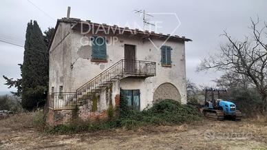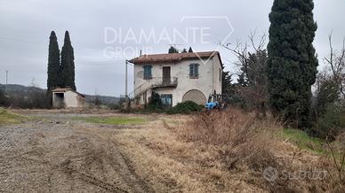 AZ401 - SCANSANO (GR), Loc.Pomonte: Azienda agricola con casa di campagna, capannone e terreno di 27 ettari circa, composta da: - casa di campagna di 160 mq circa su due livelli con fondi e locale tecnico a piano terra e appartamento a piano primo composto da 4 vani e bagno. - capannone di circa 250 mq. con struttura prefabbricata su pilastri e tettoia adibito a fienile e rimessa degli attrezzi - porcilaia e forno - 27 ettari circa di terreno seminativo di medio impasto tendente all'argilloso, calcareo, ricco di scheletro, collinare di ottima qualità adatto a qualsiasi tipo di coltura e piantumazione. Posizione panoramica.
