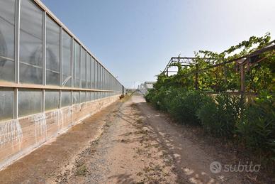 Al suo interno sono state realizzate due serre automatizzate in ferro vetro per una superficie totale pari a mq 5200, oltre altri 1600 mq di struttura in ferro e vetroresina coltivata ad uva da tavola. Le strutture sono dotate d'impianti per l'irrigazione. All'interno della proprietà sono presenti n°400 piante fruttifere in piena produzione (pesche e albicocche), n°200 ulivi frangivento ed un grande orto irriguo. Il terreno è servito da corrente elettrica ed idrica grazie anche alla presenza di due pozzi artesiani. Sia internamente alle serre che a servizio del frutteto è presente un impianto d'irrigazione perfettamente operativo.