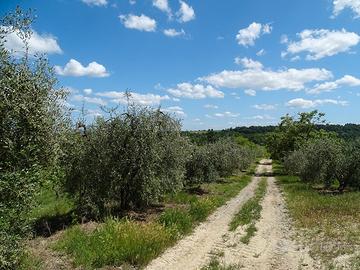 La proprietà è formata da dolci colline e ampie zone pianeggianti, è riserva di caccia Faunistica, vi si accede da cancello automatico direttamente da strada provinciale, nelle posizioni più dominati e panoramiche si trovano i fabbricati, tre case coloniche, capanne, fienili, cantina, magazzini e capannoni per 2500 mq.