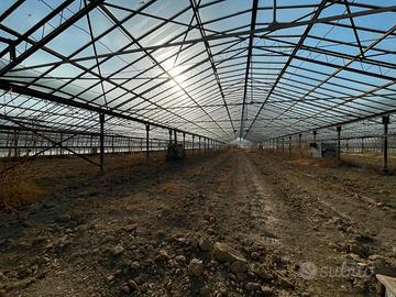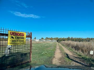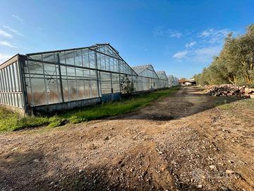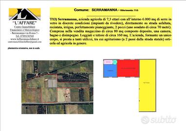 T13) Serramanna, azienda agricola di 7,3 ettari con all'interno 6.000 mq di serre in vetro in discrete condizioni (impianti da rivedere), direttamente su strada asfaltata, recintata, irrigua, perfettamente pianeggiante, 2 pozzi (uno sondato di circa 70 metri). Compresa nella vendita magazzino di circa 80 mq composto deposito, una camera, bagno e disimpegno. Loggiati e tettoie di circa 160 mq. L'azienda, formante un unico corpo, si presta a tanti utilizzi, tra cui agriturismo (a 2 passi dalla strada statale) orticola ed agricola in genere.