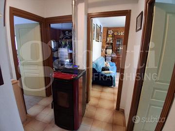 Al 1°piano un secondo appartamento con ingresso su disimpegno, soggiorno e cucina abitabile che si affacciano sul balcone con vista panoramica, due camere da letto e servizio finestrato.