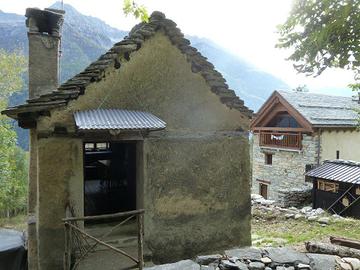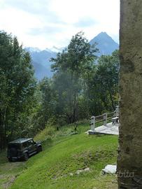 Baita indipendente su due livelli con terreno circostante.