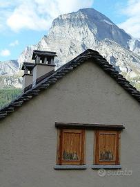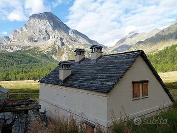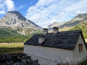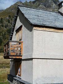Completa negli esterni con l'ampio tetto in "piode" locali ne è rimasto al rustico l'interno: su due livelli comprende la zona giorno con il bagno al pian terreno, disimpegno e, con scala interna centrale, due camere al piano primo sottotetto, per complessivi 110 mq. utili. I completamenti interni possono essere realizzati secondo le esigenze personali, anche con l'ampliamento di alcune aperture, particolarmente sul fronte a giorno. Le reti dei servizi sono a breve distanza.