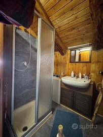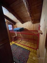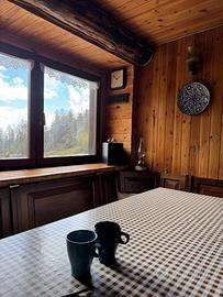 In una zona integra e protetta sul margine del pascolo, la baita si eleva su due piani e comprende al pian terreno un ampio soggiorno con cucina completa ed un alto ripostiglio, con legnaia esterna e, con scaletta interna in legno, nel sottotetto, una camera principale luminosa, altra cameretta e bagno. L'edificio è collegato alla rete elettrica ed idrica (da fonte con accumulo) ed il riscaldamento è assicurato con stufa a legna.