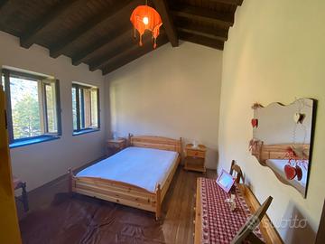 Al primo piano invece comprende 1 camera da letto grande con armadio, uno spazio indipendente per 1 letto (anche a castello), uno spazio per un armadio e infine uno spazio sopra la scala come ripostiglio.