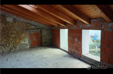 Appartamento bilocale in costruzione, da finire e personalizzare, in schiera di case ristrutturate. 40 metri quadrati su due livelli, struttura in pietra e mattoni coibentati, tetto in legno con isolante. Posto auto privato compreso. Richiesta € 35.000.