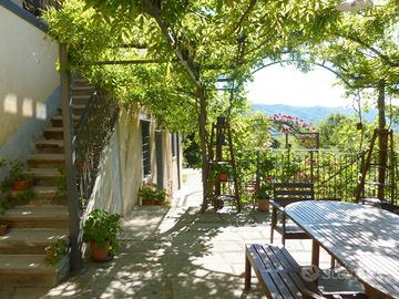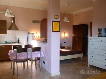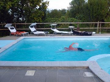 A pochi km dall'uscita autostradale ed a tre km da un piccolo centro, immerso nel verde, paesaggio collinare, a 400 m.s.l.m., zona tranquillissima e con stupenda vista panoramica. Piccolo borgo ristrutturato di recente a scopo di ricezione turistica. Comprende più alloggi; oltre all'abitazione principale ci sono due camere indipendenti e un bagno, quattro monolocali con cucina, due appartamenti trilocali. Taverna per colazioni, locali di pertinenza e rimessa attrezzi. Piscina con zona idromassaggio, stabile per fitnes con bagno turco, palestra, spazio massaggi, solarium del 700 appena ristrutturato. Una bella piscina a due livelli nella parte centrale del parco, panchina di seduta e idromassaggio, pompa di spinta d'acqua controcorrente per il nuoto. Una unità del complesso è adibita a zona fitness con una piccola palestra completa di bagno di servizio, il bagno turco in muratura, piastrellato con i mosaici, una terrazza panoramica chiusa con vetrate per il relax ed il soppalco per la zona massaggi. Sul tetto pannelli solari per la produzione di acqua calda. Riscaldamento a pavimento. Locali di servizio quali locale caldaia, lavanderia, stireria, rimessa per attrezzature da giardino e della piscina. Un edificio adibito a rimessa di attrezzature varie per gestire e tenere un ordine i tre ettari di terreno che circondano il casale. Connessione elettrica, telefonica, acquedotto, internet.