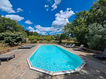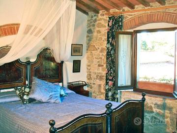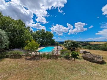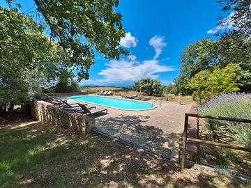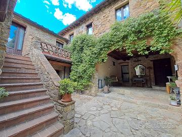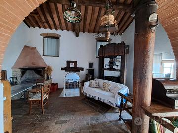 Bellissima proprietà. Tenuta agricola di 50 ettari di terreno con Borgo di 1100 mq, una antica realtà contadina risalente al 1400 fatta di più edifici a creare un Borgo, è sicuramente un luogo incantato, la strada di accesso finisce nella proprietà e la vista che ci offre il luogo è meravigliosa, il fabbricato principale è formato da 5 appartamenti e locale ristorante ricavato nell'antico frantoio che conserva ancora la macina originale, l'ex fienile è la residenza padronale, 270 mq con ampia zona giorno, 3 camere e 3 bagni, in totale sono 19 camere e 20 bagni, il terreno è in parte a giardino con piscina, una zona parcheggio con carport, con fotovoltaico da 20 kw, circa 1000 piante di olivi, seminativi e bosco.