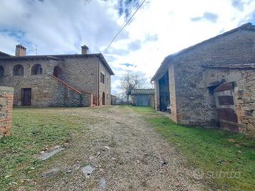 Siena Collevaldelsa Toscana Casale con terreno Siena A 1260 Azienda agricola con 42 ettari di terreno di cui 29 ha a seminativo prevalentemente pianeggiante e 13 di bosco, quote PaK si. Nella parte più alta della proprietà, con bella vista panoramica si trova il borgo di origini medievali formato da due abitazioni, fienili, magazzini, annessi e capannone per totali mq 1400. Ape G Richiesta 1.000.000 euro