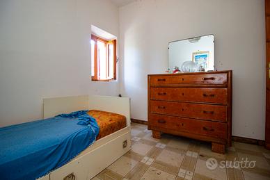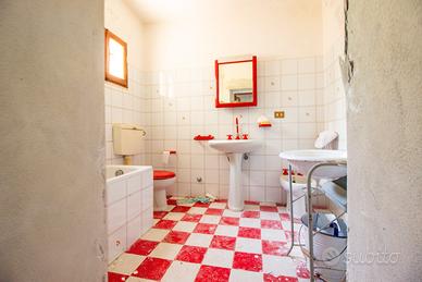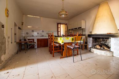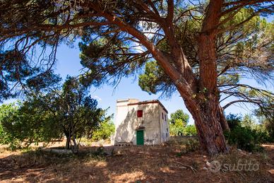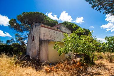 Caniga, Monti di Jesgia. Proponiamo casa totalmente indipendente e libera su quattro lati, disposta su due piani e composta da ingresso, soggiorno con camino, zona cottura e bagno - finestrato e completo, dotato di piccola vasca - al piano terra; tre camere, piccolo disimpegno e botola di accesso al tetto, disposto al primo piano. A completare il tutto terreno di circa 2,5 ettari, completamente recintato, dotato di cancello di ingresso e piantumato, con piccolo fabbricato completamente diruto di circa 70 metri quadri. Risalente all'800, la casa è stata comunque rimaneggiata nel corso dei decenni, mostrando impiantistica elettrica ed idrica di circa 30 anni; pavimentazione in ceramica; porte interne in legno; infissi esterni in materiale misto, in legno monovetro con relativi portelloni di ferro; placcaggi in ceramica; scala interna con gradini in ardesia; pozzo e fossa reflui. Riscaldamento non presente. Il rudere, sempre risalente all'800, mostra ancora l'antico pozzo posto all'interno - ormai completamente asciutto - due vasche - probabilmente usate per la raccolta dell'uva - un camino ed il tetto in legno e canneto, ormai perduti. Di discreta volumetria, la stessa potrebbe essere utilizzata per accrescere quella della casa principale o per un completo restauro. Posta a circa 3 minuti d'auto da via Caniga (la via principale) - e a 8 minuti dall'ingresso di Sassari (Tanit), la casa si presta per chi è in cerca di un'abitazione singola e personalizzabile, o anche per soluzioni come B&B