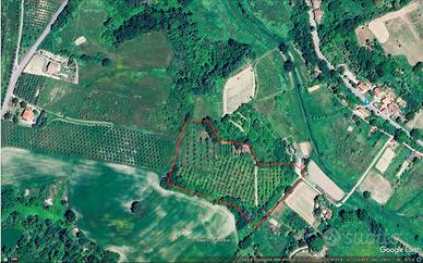Vendo in Toscana, provincia di Siena, circa 3 ettari di terreno agricolo, per metà noceto da taglio, in parte oliveto in produzione con 54 olivi, frutteto e seminativo. Presenti due capanne regolarmente accatastate come C/2 di circa 50 mq complessivi. Una capanna è di epoca e realizzata in solida muratura con pavimento in pietra; l'altra è in lamiera con fondamenta in cemento armato, ma è possibile rifare gli esterni in muratura o legno. Presenti e compresi trattore a cingoli e attrezzi agricoli