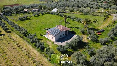 TR503 | Nel cuore della campagna di Cori, proponiamo una soluzione che unisce spazio, indipendenza e reali possibilità di sviluppo: questa proprietà è ciò che stavi cercando da tempo. Casa e circa 3,5 ettari di terreno agricolo, con 1,5 ettari di uliveto in produzione (circa 400 piante di varietà Leccino e Itrana), ideale per una produzione di olio nel Lazio, oltre a circa 5.000 mq di giardino e una restante parte boschiva che garantisce privacy e valorizza il contesto naturale. L'abitazione, di circa 110 mq, ristrutturata con salone, cucina con angolo cottura e bagno, offre la possibilità di personalizzare gli ambienti secondo le proprie esigenze. Una soluzione versatile, ideale come seconda casa in campagna o per lo sviluppo di attività ricettive come B&B o location per eventi. La proprietà è servita da doppio accesso e dispone di un pozzo, assicurando piena autonomia idrica per l'attività agricola e la gestione degli spazi esterni; a completare, un impianto fotovoltaico contribuisce all'efficienza energetica dell'abitazione, rendendo l'intera soluzione ancora più sostenibile e funzionale. Una proposta completa per chi cerca una casa con terreno a Cori, un uliveto in vendita vicino Roma o un luogo dove vivere e produrre, unendo qualità della vita e opportunità agricola. Contattaci ora per maggiori informazioni e per organizzare una visita!