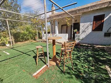 Casa Agricola con ingresso su loggiato , soggiorno e cucinotto abitabile ,camino , bagno finestrato , camera luminosa che affaccia su un secondo loggiato, arredato. .Ampio giardino piantumato su 4 lati (45 ulivi - 4 fichi - 3 nespoli -3 peri -3 melograni - 8 mandarini -- 2 gelsi - Meli , ciliegi , albicocco , 4 cachi , 3 limoni, 7 aranci da spremuta e vaniglia - piccola vigna di cannonau e vermentino, mirto bianco e nero ) impianto di irrigazione.su tutti i filari alimentato da pozzo 40 mt . Terreno su 4 lati , 3000 mq