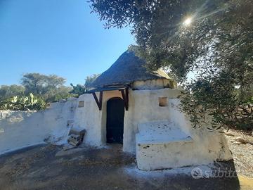 Sulla proprietà è presente una costruzione storica in pietra (edificabile) con n. 3 Trulli autentici posizionati in modo separato. Con un buon progetto di ristrutturazione è possibile ricreare 3 mini appartamenti autonomi, ognuno col proprio trullo. Ingresso indipendente con vialetto e possibilità di poter parcheggiare in modo autonomo e indipendente. La proprietà è nelle campagne di Ceglie Messapica.