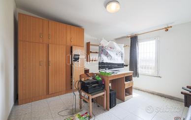 ~Piano Terra: Ampio portico d'ingresso che conduce a un grande ambiente multifunzionale, ideale come garage, magazzino o potenziale spazio da personalizzare.