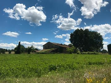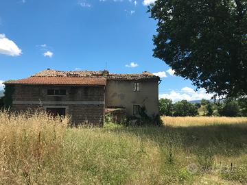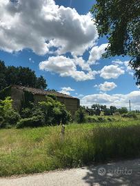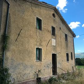 Matelica (MC) Loc. Mistriano. Propongo complesso rurale in zona pianeggiante e soleggiata. Il Complesso è composto da una casa colonica di ampia metratura con affiancata capanna e piccolo magazzino il tutto circondato da 5000 mq di corte.