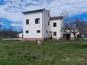 Casa circa 300mq + corte piantumata di oltre 3500 mq , recintata con 3 cancelli carrabili e 2 pedonali . La casa e stata ristrutturata nel 2021 internamente e esternamente con impianti elettrici idrici e riscaldamenti nuovi e provvista di climatizzatore zanzariere infissi e zanzariere nuovi . Piano terra 2 ingressi camera lavanderia e ampia cantina interrata , grande salone e grande cucina , 2 accesori depositi,2 garage per auto . Primo piano tre ampie camere da letto . 2 piano ampia soffitta rustica grande parte abitabile luminoso con finestre . La casa e molto luminosa , con il sole che nasce e tramonta su tutti i lati , fuori ce la fermata autobus a 1,5 km dal centro di Macerata con supermercato e vari sevizi molto vicini . Volendo disponibile altri 1ettaro e mezzo di terreno inriguo pianeggiante adiacente all'immobile.
