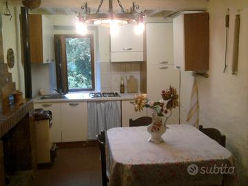 la casa si compone cucina piano terra piano sotto cantina ,primo piano camera ,secondo piano altra camera ,e 1un bagno ,la casa e abitabile pronta per resiederci ,