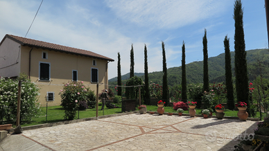 Esternamente gode sia di una bella terrazza con vista panoramica dove cenare o pranzare in estate che di un'antica aia in pietra situata sul retro della casa raggiungibile anche in macchina.