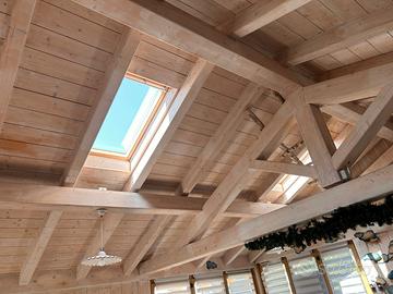 Vendo casetta in legno prefabbricata, utilizzabile come opera precaria con 5 porte finestre seminuove con doppio vetro isolato e un container bagno monoblocco con due vani wc e due antibagno con lavandino, predisposto per allaccio a fognature e impianto elettrico a norma.