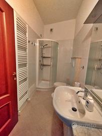 Ampia zona giorno con termo-camino canalizzato, cucina separata con portafinestra che comunica direttamente col cortile. Due bagni con doccia e due camere di cui una matrimoniale e una singola di generose metrature.