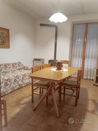Basso Piemonte, vicinanze Garbagna (AL) in piccolo borgo panoramico. Contesto tranquillo vicinanze mezzi e servizi. Casa indipendente con giardino. Distribuita su due piani: piano terra garage e ampi locali con ingresso indipendente; piano soprastante appartamento disposto razionalmente con zona giorno e cucinotto, balconata, due ampie camere e bagno. Possibilità di terreno limitrofo.