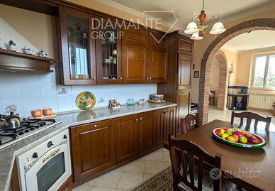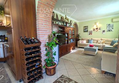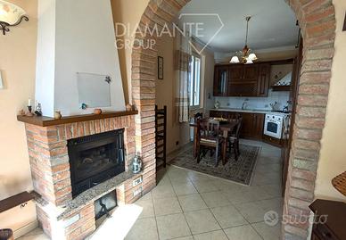 -Piano terra: appartamento di 100 mq circa composto da soggiorno con camino, cucina, disimpegno, due camere e due bagni.