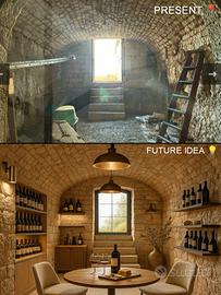 - Cantina in pietra naturale seminterrata: circa 40 m², ideale per conservare prodotti tipici locali e per realizzare un'elegante enoteca o spazio degustazione.