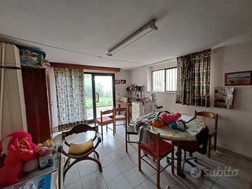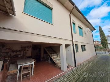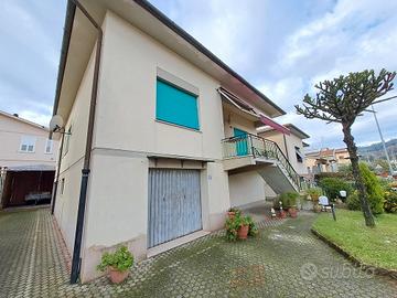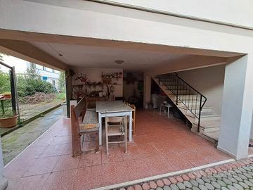 Casa singola con giardino su 4 lati costruita anni 60/70, buone condizioni generali formata al piano terra da garage, magazzini, locali pluriuso e loggiato per totali 125 mq con altezza di metri 2,20, al piano primo appartamento di 125 mq composto da ingresso da scala esterna, salone doppio, cucina, 3 camere, bagno, inoltre altra scala interna che scende nella loggia al piano terra.