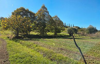 I terreni agricoli di pertinenza sono l'elemento che conferisce alla proprietà il suo carattere tradizionale. Sono caratterizzati da colture tipiche della campagna toscana, tra cui seminativi, rigogliosi vigneti e numerosi uliveti, questi ultimi essenziali per il forte carattere paesaggistico del luogo. La morfologia collinare e l'esposizione particolarmente favorevole rendono l'area eccezionalmente adatta sia per l'implementazione di attività agricole, sia come contesto naturale e di pregio per le abitazioni.