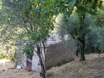 Il casale è composto da due livelli di circa 40 mq l'uno, ed una cisterna per la raccolta dell'acqua piovana. Il terrno è di circa 6000 mq e ci sono ulivi alberi da frutto e bosco per la legna da ardere.