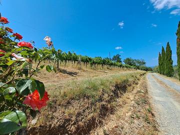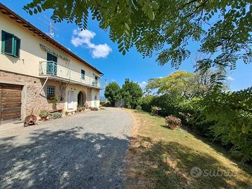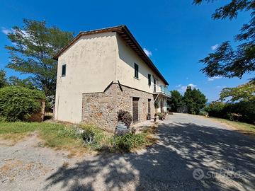In bellissima posizione panoramica con vista fino a San Gimignano, Casale su due piani per totali 240 mq, di cui al piano terra magazzini e cantina e al piano superiore due appartamenti indipendenti, circondato da 33000 mq di terreno su cui insistono annesso 50 mq, annesso 45 mq, vigneto per 2,4 ettari, 200 olivi, viale privato di accesso alla proprietà, Gpl, caldaia a Pellet, 2 pozzi romani.