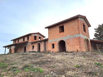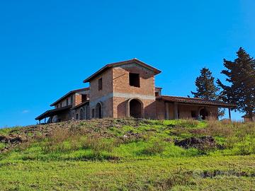 Casale da rifinire in bellissima posizione panoramica nella campagna toscana presso la città di Volterra, formato da due unità di 150 mq cadauna e circondato da 5000 mq di terreno, costruito in stile toscano, tutte le utenze presenti, permesso per piscina, dispone di pietre locali per eventuali finiture, ottima viabilità.