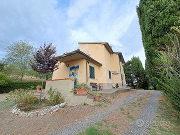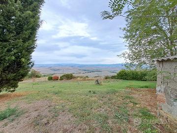 In bella posizione panoramica con vista sulla città di Volterra e le dolci colline toscane, casa colonica tipo ente maremma, annessi e 6 ettari di terreno, il Casale 200 mq è formato da due appartamenti indipendenti, uno al piano terra composto da soggiorno, cucina pranzo, camera, due camerette e bagno, l'altro appartamento ha ingresso da lato opposto ed è composto al piano terra da lavanderia e magazzino e al piano primo salone cucina pranzo, camera con terrazza, altra camera, ripostiglio e bagno, oltre l'abitazione nel resede ci sono due manufatti, una capanna di 30 mq e annesso con forno di 90 mq, il terreno 6 ettari è coltivato per 1,5 ha ad oliveto (350 piante), 1,5 ha di seminativo e 3 ha di bosco.