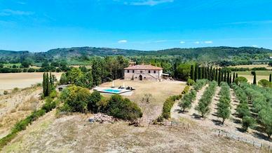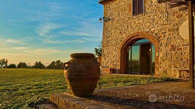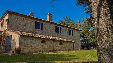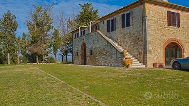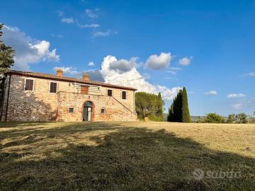 Meraviglioso Casale in pietra posizionato su di un colle con vista sulla splendida campagna Toscana, siamo a pochi minuti da Siena, il luogo e veramente bello, la proprietà è formata dal Casale principale 500 mq su due livelli e una Dependance di 200 mq, il tutto circondato da 25000 mq di terreno in parte a parco con piscina, oliveto, prato e recinti con box per Cavalli.